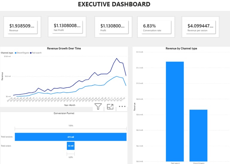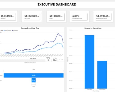 A través de un análisis estructurado y el desarrollo de dashboards, se identificaron los principales impulsores de ingresos, las ineficiencias en la conversión y las oportunidades para mejorar la rentabilidad. Los hallazgos enfatizan la importancia de optimizar la experiencia del usuario, balancear las estrategias de marketing y gestionar el desempeño de productos y reembolsos.