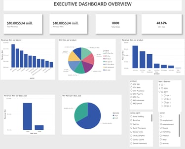 Análisis end-to-end del pipeline de ventas en CRM para comprender los impulsores de ingresos, evaluar el desempeño del equipo de ventas, analizar la demanda de productos e identificar patrones temporales de ventas que respalden la toma de decisiones estratégicas.