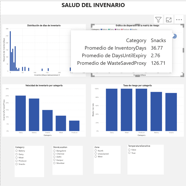 Proyecto clave que integra analítica operacional, modelado de riesgos de inventario e inteligencia de transferencias para reducir desperdicios y fortalecer la toma de decisiones en la distribución de bienes perecederos.