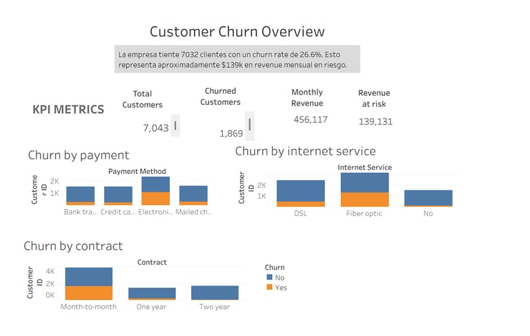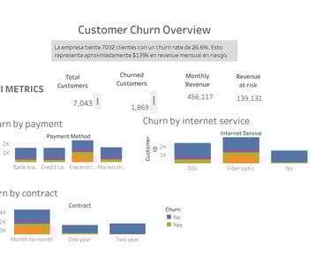 Este proyecto demuestra cómo un análisis estructurado de datos puede transformar información cruda de clientes en insights de negocio significativos. Al combinar el análisis con SQL, la exploración estadística en Python y la construcción de dashboards interactivos, fue posible identificar los principales factores que impulsan el churn y cuantificar su impacto financiero.