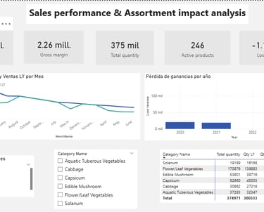 cuantificar impacto económico por reducción de surtido y generar un dashboard ejecutivo para la toma de decisiones estratégicas.