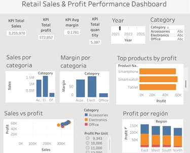 Análisis de desempeño de ventas en retail para identificar drivers de rentabilidad, patrones regionales y oportunidades de optimización mediante análisis exploratorio en Python y visualización ejecutiva en Tableau.