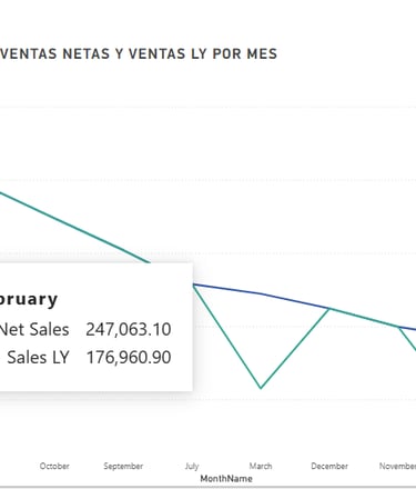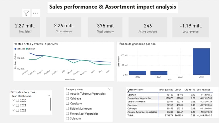 Calculamos métricas clave como Sales LY, Sales YoY %, Lost Revenue