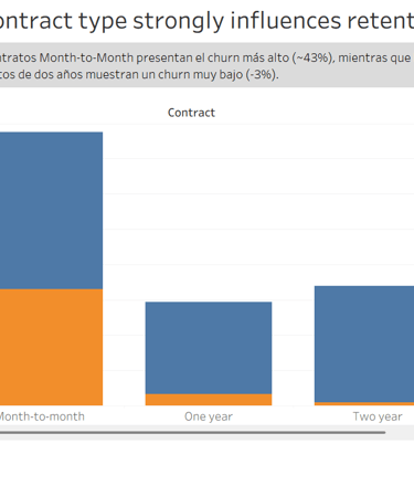 Se desarrollaron dashboards interactivos que apoyan la toma de decisiones empresariales y se elaboraron recomendaciones estratégicas orientadas a reducir la rotación y mejorar la retención de clientes a largo plazo.